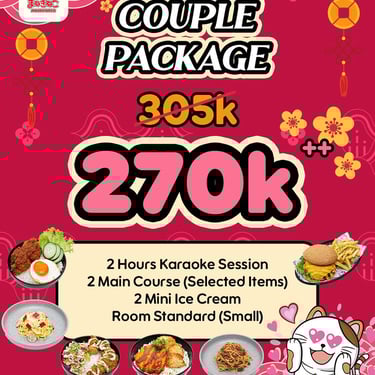Buat yang mau rayakan moment valentine tahun ini, bisa banget nih datang ke Manekineko dan ambil promo Couple Packagenya.